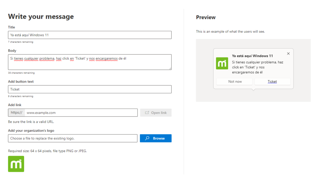 Organization messages allow us to communicate with others in the organization in a brief, personalized way that follows the company’s style guidelines. The main advantage over sending emails is that organization messages are delivered through familiar formats such as Windows 11 notifications or Microsoft 365 applications.