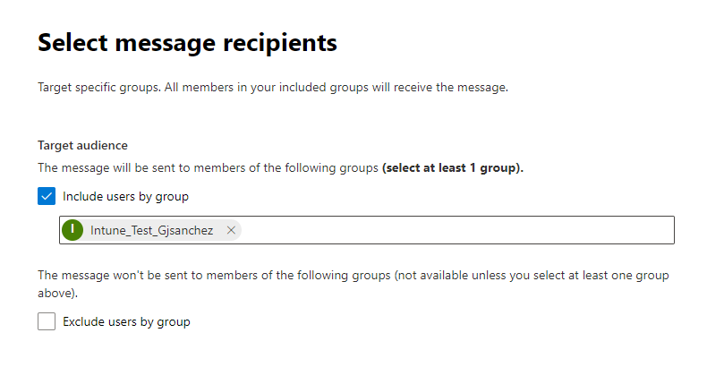 Target audience: Messages can be sent only to a specific group of users, without reaching the entire organization.