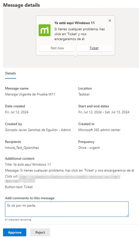 Para poder crear mensajes necesitas disponer del rol de Organizational Messages Writer, mientras que para aprobar los mensajes de otros adminsitradores, necesitas el rol de Organizational Messages Approver. Como es habitual, el rol de Global Administrator ya dispone de todos estos permisos.